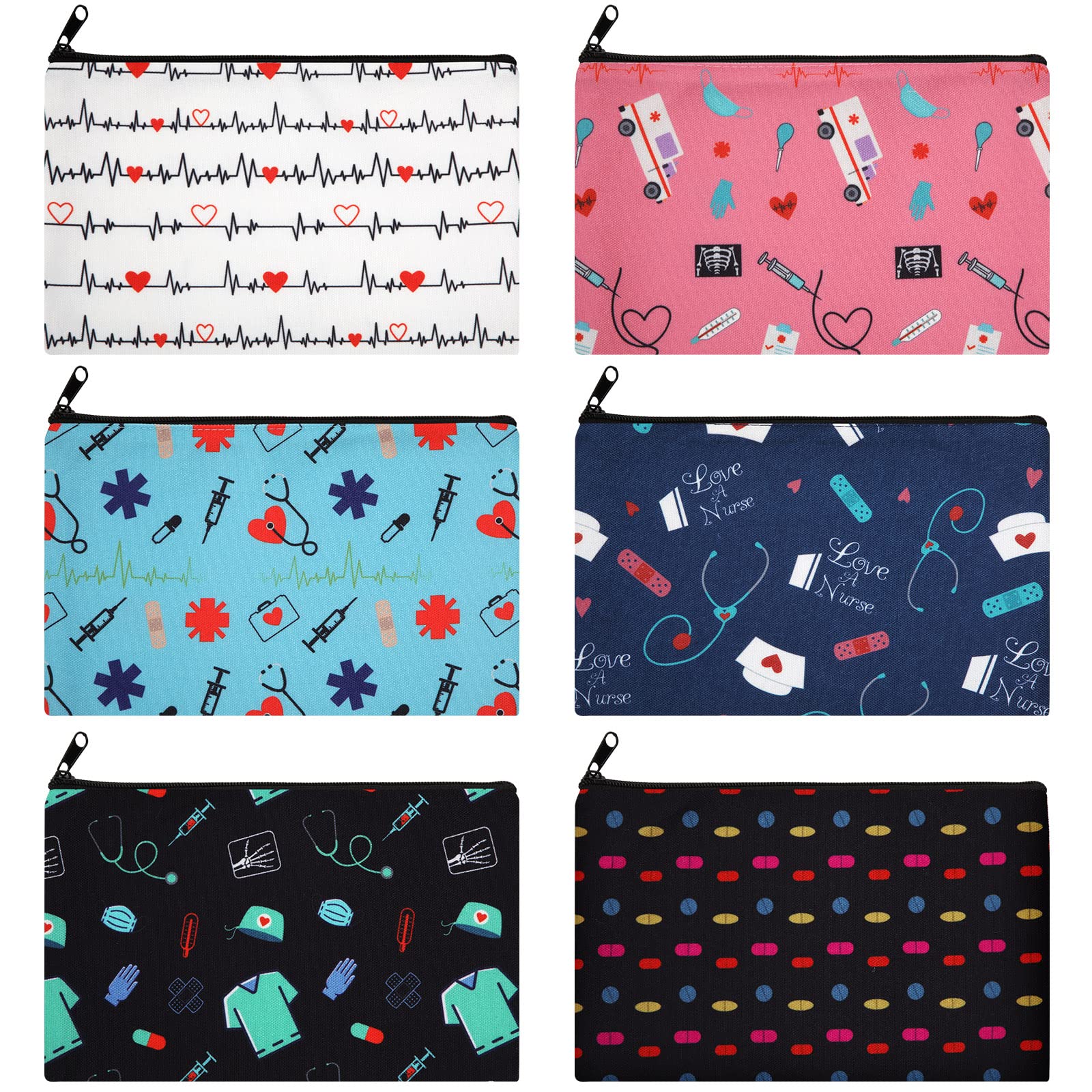 - Nurse Theme Elements: the nurse pencil pouch includes 6 different patterns in bright color, full of nurse elements, such like stethoscope, gloves, nurse gown, pills, needles, and more, interesting and funny, the bag with nurse theme elements gives a direct look at your profession, people will know more you quickly