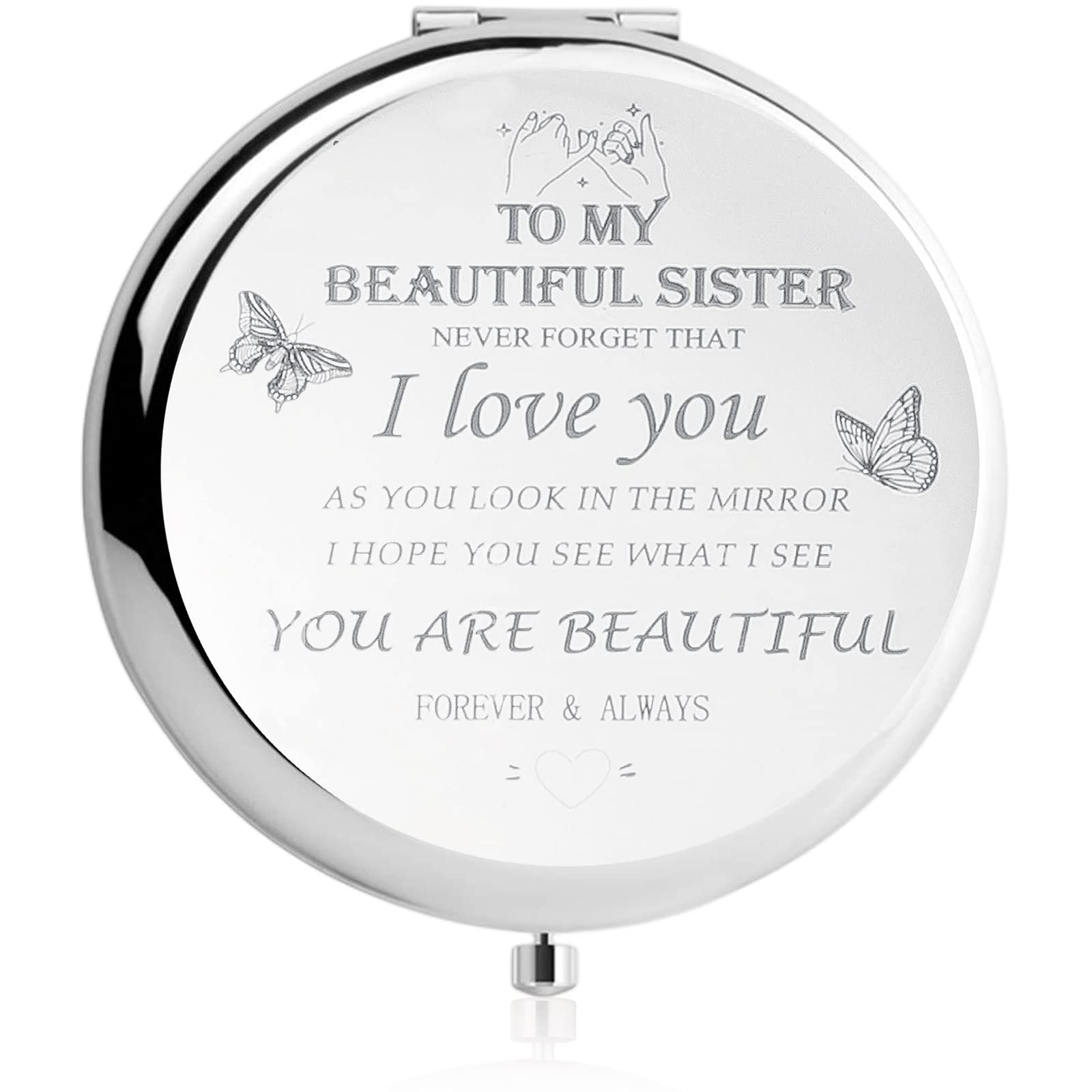 - 🎁Perfect Sister Gifts: sisters gifts from sister, sister birthday gifts from sister, Silver compact mirror is perfect and impeccable, eternal`s fine engraving , Valentine, Christmas, Thanksgiving day, sister gifts, A sweet and unique gift which could express the love between you and your best sister very well, It will bring back happy memories when she uses it every time.