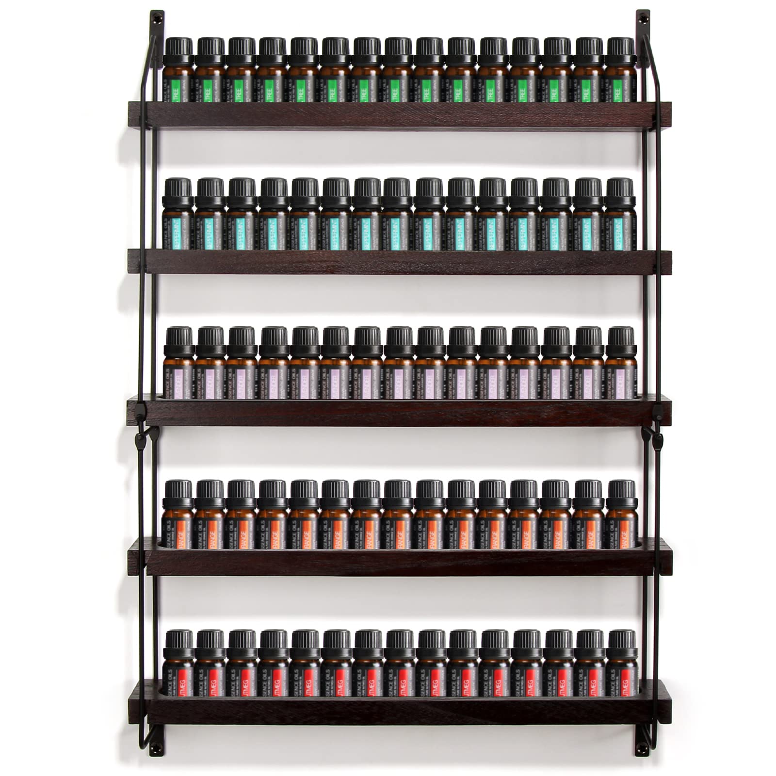 - 【Space-Saving Essential Oil Storage】This 5-tier wall essential oil holder keeps your essential oils organized for quick and easy access, keeps your desktop neat, and doesn't take up drawer or cabinet space. You can arrange your essential oils by brand, by alphabet, or according to a system of your choice.