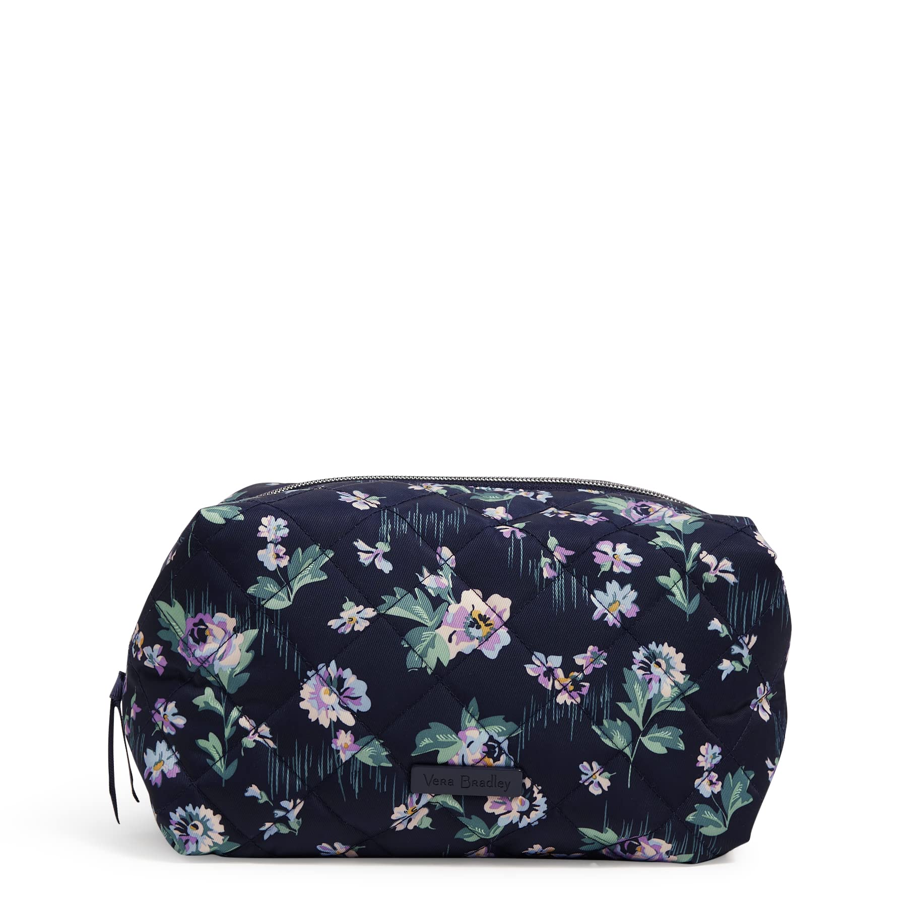 Vera Bradley Women's Performance Twill Large Cosmetic Makeup Organizer Bag, Navy Garden, One Size