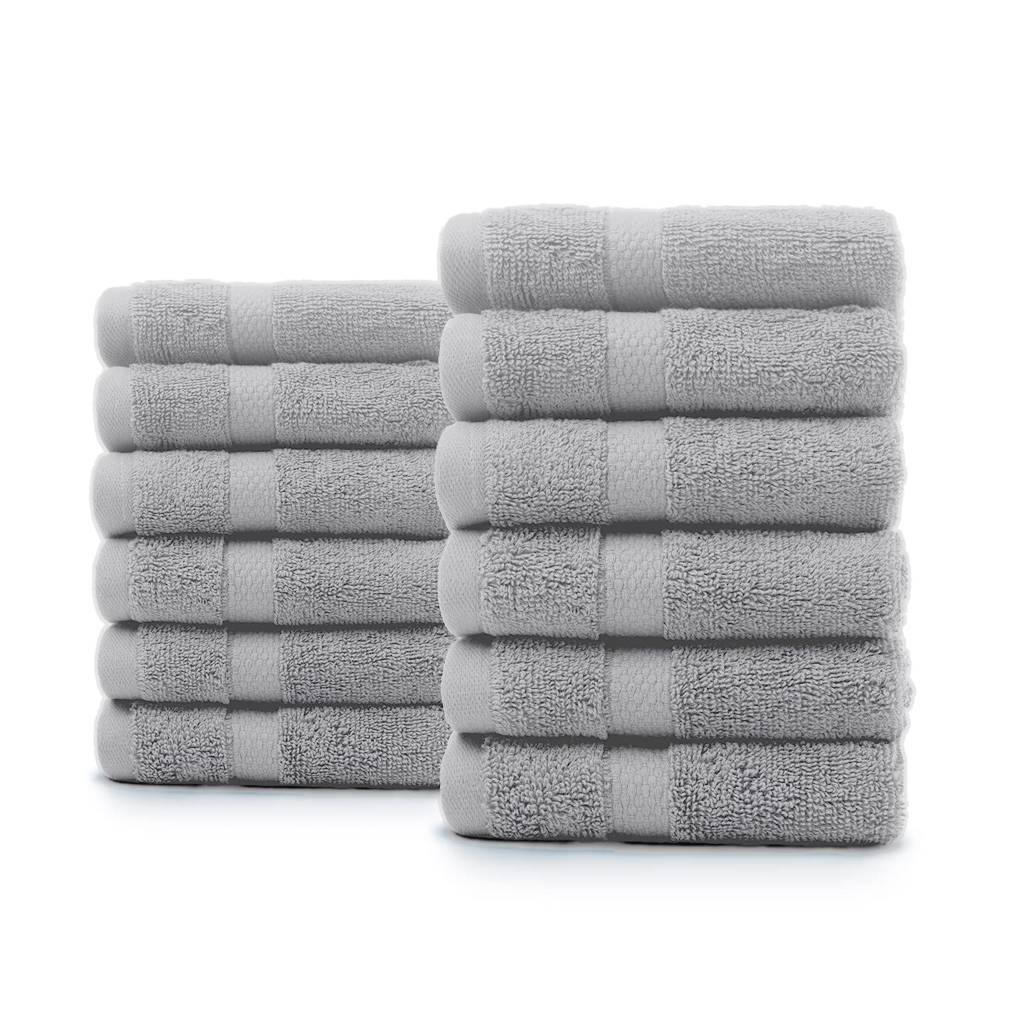 Villa Celestia 650 GSM Premium Lt. Grey Wash Cloths, 100% Cotton Face Wash Cloth for Your Body Soft Wash Cloths for Face and Body Face Towels, Washcloths Light Grey Face Cloths Pack of 12 (12"X12")